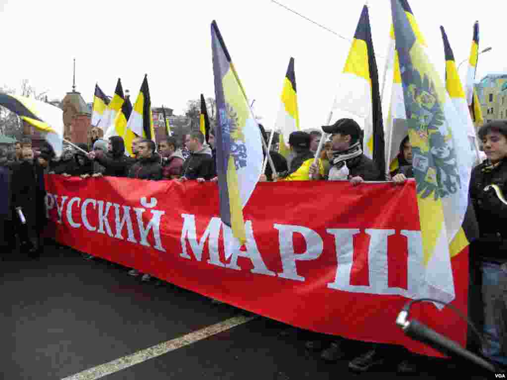 МОСКВА — Лозунги националистического, антипрезидентского и откровенно провокационного характера сопровождали «Русский марш» в центре Москвы. Ставшая уже традиционной акция российских националистов прошла в воскресенье 4 ноября в День народного единства России.