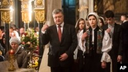 КИЕВ – Предстоятели украинских православных церквей – Украинской церкви Киевского патриархата (УПЦ КП) и Украинской автокефальной православной церкви (УАПЦ) вручили президенту Украины Петру Порошенко Обращение для передачи Вселенскому патриарху Варфоломею о предоставлении украинской церкви томоса (указа, декрета – ред.) об автокефалии.