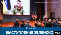 В марте Владимир Зеленский выступил в виртуальном режиме перед Конгрессом США. С начала вторжения Зеленский также выступал перед Европарламентом, Палатой общин Великобритании, парламентами Канады, Израиля, Германии, Японии, Австралии и других стран.