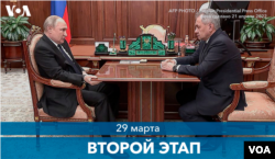 Министр обороны РФ Сергей Шойгу объявил, что задачи первого этапа т.н. «спецоперации» выполнены, и Россия готова сосредоточить основные усилия на, по его словам, главной цели — «освобождении Донбасса». Ряд экспертов считают, что Россия была вынуждена изменить свою стратегию подобным образом после провала наступления на Киев. Через несколько дней, 2 апреля, Киевская область была освобождена от российских войск.