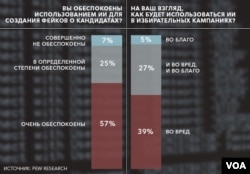 Согласно результатам опроса, 57% американцев «очень обеспокоены» недобросовестным использованием новых технологий в политических кампаниях — в частности, применением ИИ для создания предвыборных фейков. Лишь 7% опрошенных заявили, что совершенно не обеспокоены этой темой.