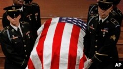 Многочисленные официальные лица США, в том числе советник президента по национальной безопасности Роберт О'Брайен и генерал армии Марк А. Милли, председатель Объединенного комитета начальников штабов, посетили в среду торжественную церемонию встречи гроба с останками военнослужащего, доставленными самолетом на базу ВВС в Довере, штат Делавэр, чтобы отдать дань памяти погибшему солдату.