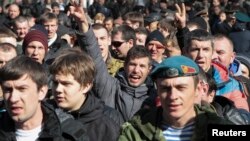 Как сообщает корреспондент Русской службы «Голоса Америки» с места события, участники мероприятия заявили о необходимости объединения представителей различных национальностей Украины в единый «антипутинский блок».