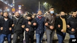 Сотни армян перекрыли центральные улицы Еревана, призывая к отставке премьер-министра Никола Пашиняна из-за соглашения о прекращении огня, которое закрепило за Азербайджаном территориальные успехи в Нагорном Карабахе после шестинедельного конфликта.