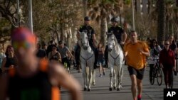 В Испании многие впервые вышли на улицу после введения общенационального карантина 14 марта, однако правила социального дистанцирования остаются в силе. Ношение масок в общественном транспорте становится обязательным с понедельника.
