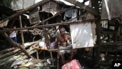 После трех дней без еды, некоторые жители столицы Лейте, Таклобана, пытаются найти продукты в руинах магазинов и домов в опустошенном городе с 200-тысячным населением.
