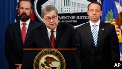 Генпрокурор Уильям Барр и его заместитель Род Розенстайн провели утром в четверг пресс-конференцию перед обнародованием доклада спецпрокурора Роберта Мюллера по итогам расследования, посвященного российскому вмешательству в президентские выборы 2016 года.