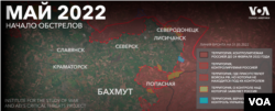 Ранее «Голос Америки» публиковал спутниковые снимки Бахмута с разницей в один год – в мае 2022 и 2023 годов:
