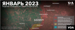 В конце января, после декабрьских боев за Яковлевку и Бахмутское, российские силы захватили Соледар. За месяцы изнурительных боев и регулярных обстрелов город был фактически полностью разрушен. Взятие Соледара позволило наемникам из ЧВК «Вагнер» продвинуться еще дальше на запад: в конце месяца они захватили Благодатное, что вкупе с непрекращающимся давлением на район села Подгородное открыло выход на Бахмут с севера.