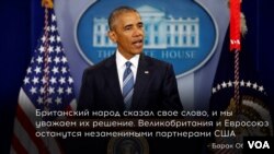 Ранее в пятницу Белый дом обнародовал реакцию президента Барака Обамы по поводу результатов британского референдума о выходе из Евросоюза.