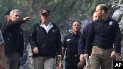 Президент США Дональд Трамп в субботу днем прибыл в Парадайс. Вместе с главой государства в сгоревший дотла город приехали нынешний губернатор штата Джерри Браун и еще не вступивший в должность новый глава Калифорнии Гэвин Ньюсом.