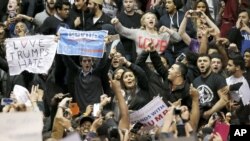 Десятки демонстрантов прошли в здание, где проходила встреча Трампа с избирателями, в то время как на улице стояли и выкрикивали лозунги тысячи протестовавших против Трампа людей. После того, как атмосфера в зале начала накаляться и люди начали вступать в драки, организаторы кампания Трампа сделали заявление о том, что встречу перенесут. Трамп призвал «к мирному поведению». Полиция сообщает о пяти арестах, двое ее сотрудников были доставлены в больницы с легкими травмами.