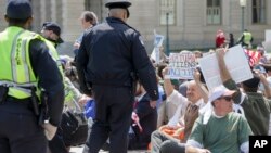 Демонстранты прошли мимо зданий Сената, неся транспаранты с лозунгами, направленными против «больших денег в политике». «Делайте свое дело» – кричали демонстранты в окна зданий.