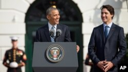 ВАШИНГТОН - В окружении бесчисленных американских и канадских флагов и под восторженные крики толпы президент США Барак Обама в четверг приветствовал на лужайке Белого дома премьер-министра Канады Джастина Трюдо, который стал первым за почти два десятилетия канадским лидером, прибывшим в Вашингтон с государственным визитом.