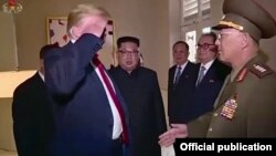 Тем временем в США обсуждается эпизод, когда в кулуарах саммита президент Трамп поприветствовал одного из северокорейских генералов военным салютом.