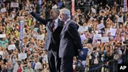 Он вышел на сцену и обнял человека, который занимал пост президента еще до него. Четыре года назад, когда жена Клинтона, Хиллари, была соперником Обамы на праймериз, он и Билл Клинтон были не в ладах друг с другом, поэтому сегодняшнее выступление экс-президента стало символом объединения партии перед лицом расколотого электората.