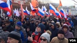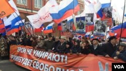 МОСКВА – В воскресенье десятки тысяч людей прошли маршем по российской столице в память о Борисе Немцове – одном из самых ярких лидеров российской оппозиции, убитом рядом с Кремлем 27 февраля 2015 года.