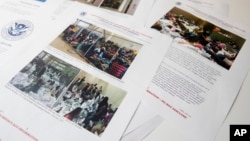 Опубликованный во вторник доклад содержит многочисленные фотографии людей в клетках, которые лежат на бетонном полу без дела, мужчин, в помещении, где из-за переполненности можно только стоять, мужчин и женщин в хирургических масках, которые, похоже, пытаются привлечь внимание фотографа.