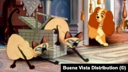 Классическая анимационная мелодрама 1955 года также не избежала дисклеймера. В «Леди и Бродяге» сразу несколько животных представлены в стереотипных национальных образах. В их числе - чихуахуа Педро (представляющий собой стереотипный образ жителя Мексики), борзая Борис, цитирующий Максима Горького c русским акцентом, а также такса и бульдог, говорящие с немецким и британским акцентами соответственно.