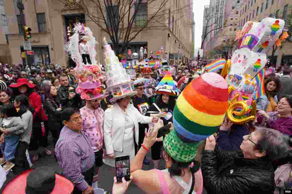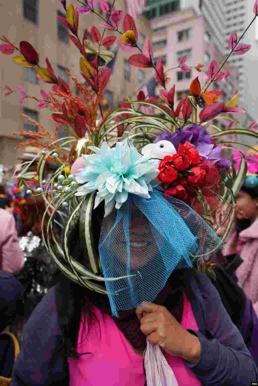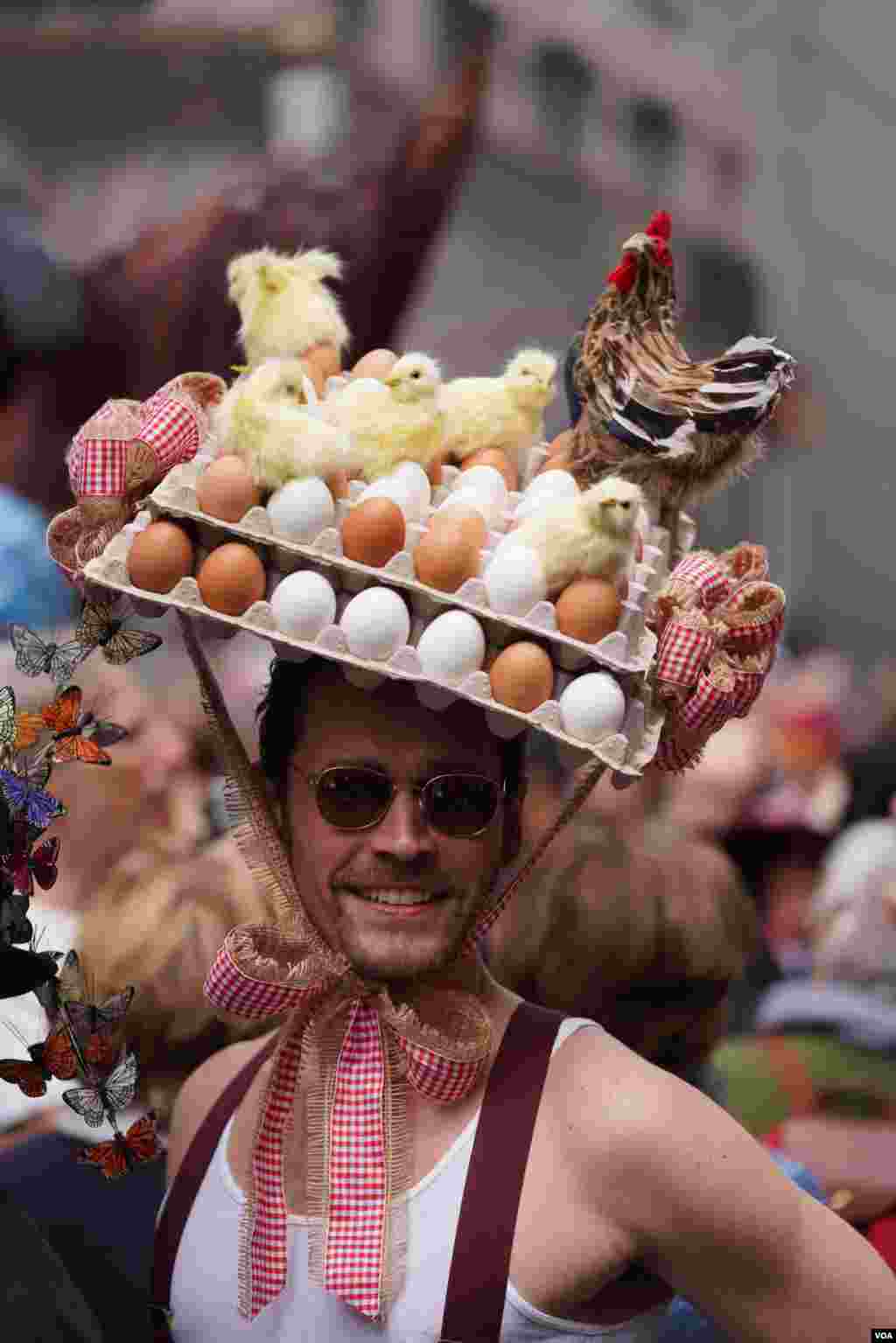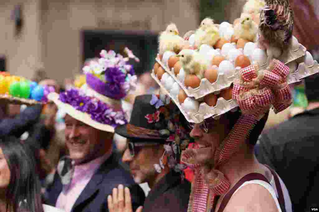 Все началось в середине 19 века, когда церкви к Пасхе стали украшать цветами. Позже причудливые цветочные композиции стали появляться на платьях и шляпках горожанок. К 1890 году неофициальное шествие превратилось в традиционный Пасхальный парад шляп, визитная карточка которого – совершенно немыслимые головные уборы