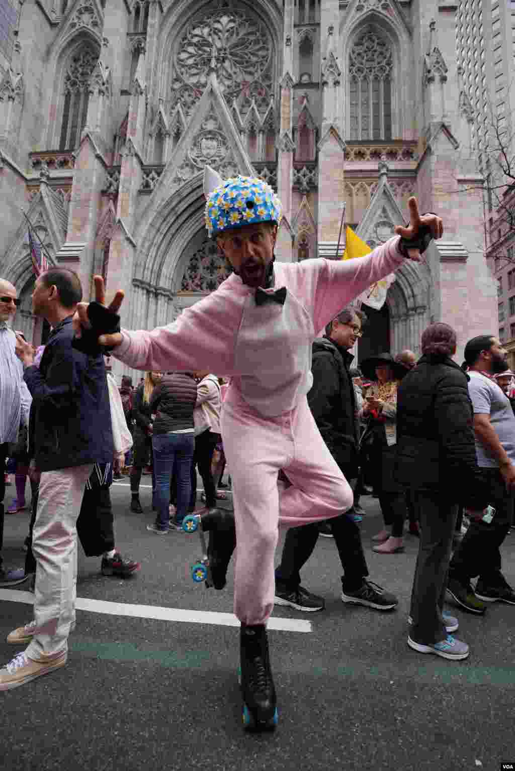 Все началось в середине 19 века, когда церкви к Пасхе стали украшать цветами. Позже причудливые цветочные композиции стали появляться на платьях и шляпках горожанок. К 1890 году неофициальное шествие превратилось в традиционный Пасхальный парад шляп, визитная карточка которого – совершенно немыслимые головные уборы