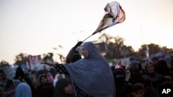 Протестующие призывают к восстановлению на посту президента Мохаммеда Мурси, который был отстранен от власти военными 3 июля, и с тех пор находится в заключении.