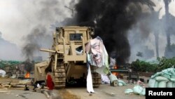 В среду при поддержке с вертолетов полиция применила слезоточивый газ и бронированные бульдозеры для сноса баррикад в двух лагерях протеста в разных районах Каира, где сторонники Мурси собирались после его свержения военными 3 июля.