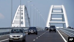 Автомобильное движение по мосту было открыто президентом России Владимиром Путиным в мае. Строительство моста через Керченский пролив стоимостью 3,6 миллиарда долларов вызвало резкую критику со стороны ЕС, заявившего, что оно является очередным нарушением суверенитета Украины.