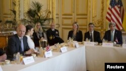 Министр иностранных дел Великобритании Уильям Хейг, госсекретарь США Джон Керри и временный министр иностранных дел Украины Андрей Дещица встретились в Париже в рамках подписанного в 1994 году Будапештского меморандума, обязующего стороны «воздерживаться от угроз и применения силы против территориальной целостности и политической независимости Украины» в обмен на отказ Украины от ядерного оружия. На встречу был также приглашен глава российского МИД Сергей Лавров, однако он на нее не приехал.