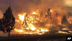 Пожарные сообщают, что огонь повредил или разрушил около 20 зданий. Около 350 пожарных пытались потушить пожар в субботу, воспользовавшись моментом, когда ветер немного утих.