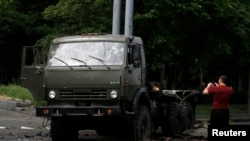 На дороге к донецкому аэропорту журналисты Reuters видели забрызганные кровью и изрешеченные пулями грузовики, похожие на те, что используют сепаратисты.