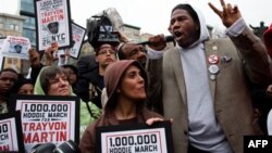 Демонстранты вышли на площадь Юнион-сквер, чтобы почтить память 17-летнего Трейвона Мартина, убитого 26 февраля в районе Орландо, когда он возвращался домой из магазина.