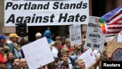 Между участниками двух акций происходили перебранки, но в большинстве случаев дело ограничивалось словесными перепалками, пишет газета The Oregonian.