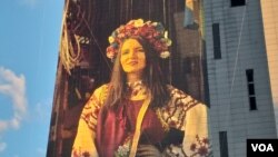 На официальное открытие фрески на стене бывшего «Дома Москвы» приехала и сама Татьяна Дроботя. Присутствующие обступили ее, фотографировали, расспрашивали, передавали пожелания победы воинам Украины.