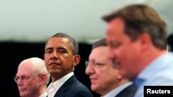 Ранее президент США провел переговоры с британским премьером Дэвидом Кэмероном. Они посетили школу в близлежащем городке Эннискиллен.