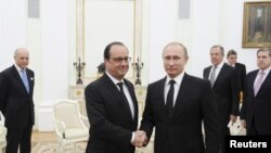 Олланд, развернувший активную дипломатическую кампанию по созданию мощной силы для борьбы с исламистами, встретился в четверг с российским президентом Владимиром Путиным, чтобы обсудить более тесную координацию военных действий против общего врага и варианты политического урегулирования кризиса в Сирии.