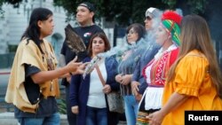 29-летняя Кимберлей Бегай, член племени Навахо, рассказала, что она была впечатлена, увидев так много коренных американских племен, собравшихся вместе в день единства.