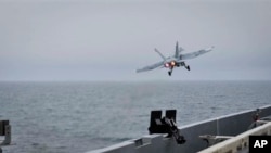 Сообщение об этом инциденте появилось во вторник и исходило от официального лица, говорившего на условиях анонимности. По его словам, самолет F/A-18E вынужден был прибегнуть к маневру, чтобы избежать столкновения с иранским дроном QOM-1, игнорировавшим неоднократно направляемые ему радиосигналы.