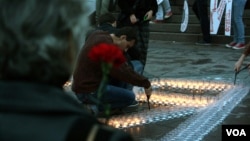 Как сообщает корреспондент Русской службы «Голоса Америки», вечером 16 сентября на площадь Независимости в Киеве пришли около сотни украинских журналистов, которые почтили память погибших коллег.