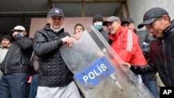 Полиция разогнала митинг позднее в понедельник, но через несколько часов демонстранты вернулись на центральную площадь в Бишкеке и ворвались в здание, где размещаются администрация президента и парламент.
