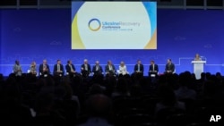 Еще одно, с чем согласились все выступавшие на конференции: за восстановление Украины в итоге заплатить должна Россия. Урсула фон дер Ляйен пообещала, что до ухода на летние каникулы Еврокомиссия представит план как мобилизовать замороженные российские активы на благо Украины.