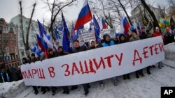 МОСКВА - Многолюдное шествие под названием марш «В защиту детей» было организовано в российской столице 2 марта. Собравшиеся прошагали по Гоголевскому, Никитскому и Тверскому бульварам от станции метро «Кропоткинская» до Новопушкинского сквера. Акция прошла без особых эксцессов, и завершилась митингом.