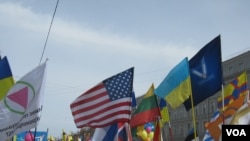 Еще один плакат, возвышавшийся над демократической колонной, гласил: «За дружбу с Украиной! С Европой! С Америкой! No war!». Когда же колонна, наконец, двинулась с места, в динамиках грузовика, ехавшего впереди, зазвучала песня «Go West» в исполнении дуэта «Pet Shop Boys».