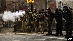 В ночь на понедельник федеральные агенты неоднократно применяли нечто похожее на слезоточивый газ и перцовый спрей против демонстрантов у здания федерального суда в центре Портленда.