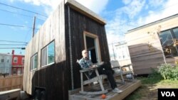 В одном из северо-восточных районов Вашингтона, напротив старого кладбища, за деревянной оградой прячется первая община владельцев микродомов – правда, пока домиков на участке всего четыре, так что остается место для небольшого огорода. Каждый дом выстроен и обставлен в собственном стиле – в доме Брайана Леви – большие окна («чтобы открывался хороший вид на кладбище и можно было размышлять о бренности бытия»); Джей Остин назвал свой дом спартанской наружности «спичечным коробком». Ли Пейра купила свой дом готовым через сайт электронных объявлений «Крейглист» – и переделала его, добавив кровать-лофт, съемное крыльцо и необычный дизайн с асимметрично торчащими досками на лицевой части. Дом Илейн сделан по классическому дизайну компании «Тамблвид», специализирующейся на производстве микродомов – включая мини-витраж над кроватью-чердаком. Все дома на участке – на колесах.
