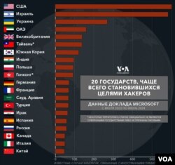 США, Израиль и Украина значительно опережают своих соседей по числу киберугроз, зафиксированных Microsoft. Например, количество подобных угроз в США более чем в 12 раз превышает число зафиксированных кибератак против Канады, занимающей в рейтинге американских стран второе место.