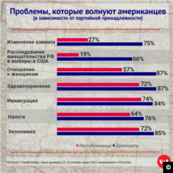 Республиканцев не очень волнует и вмешательство России в американские выборы: для них намного важнее вопросы иммиграции, здравоохранения и налогообложения