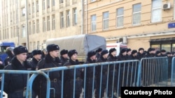 Маршрут проведения акции действительно был оцеплен усиленными нарядами полиции, в центре Москвы были видны десятки грузовиков, перевозивших полицейские части и подразделения внутренних войск.