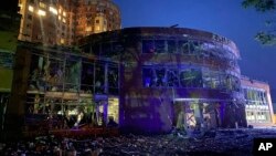В результате атаки также повреждены бизнес-центр, учебное заведение, жилой комплекс, кафе и магазины в центре города. Шесть человек ранены.