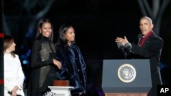 В своем еженедельном обращении президент Обама и первая леди в субботу пожелали всем американцам счастливого Рождества и прекрасных зимних праздников от имени всей своей семьи, включая двух своих собак - Бо и Санни. Первая чета вспоминала вслух о последних 8 годах, на протяжении которых они «имели честь служить американскому народу» и о том прогрессе, которого им удалось достичь за это время.